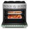 satisfies the needs of the most demanding cooks by combining the precise control of a gas cooking surface and the even baking, roasting and broiling of an electric oven.