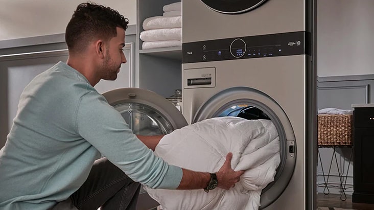 Built-in intelligence takes out the guesswork—AI technology selects optimal wash & dry motions and settings. Washer can auto-select a compatible drying cycle.