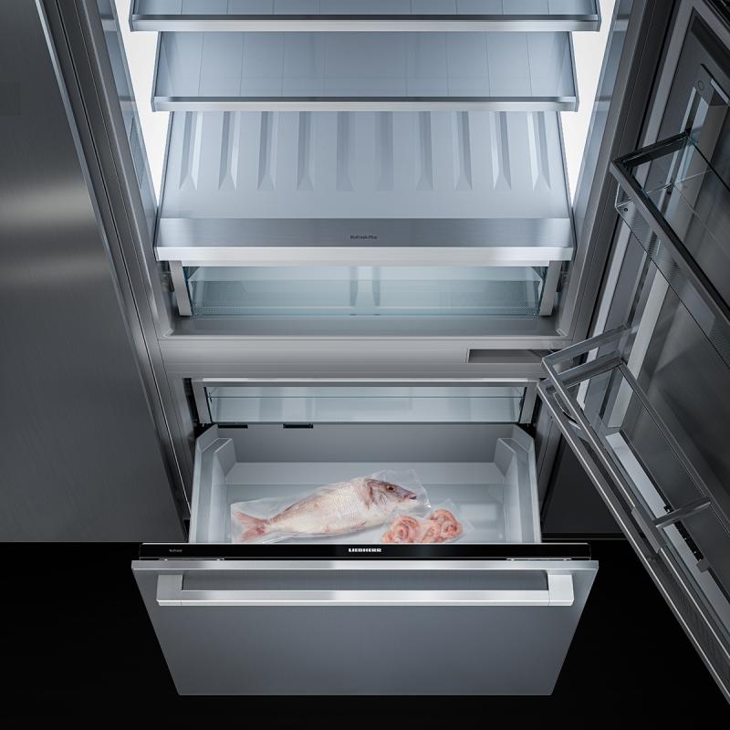 Reliable quality even below zero. The Monolith’s drawer, which is integrated in the freezer drawer, is completely enclosed by the FrostSafe system, thus preventing unwanted air exchange and the loss of cooled air. This prevents temperature fluctuations and freezer burn.