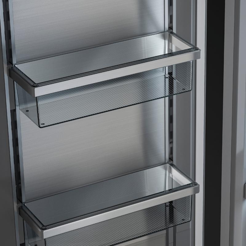 With their unique design, Monolith’s durable freezer door bins allows cold air to flow freely, keeping temperature constant while optimizing food preservation. The see-through door bins are also fully adjustable, easily accommodating small to medium-sized items so that inner freezer shelves are free to accommodate bulkier foods.