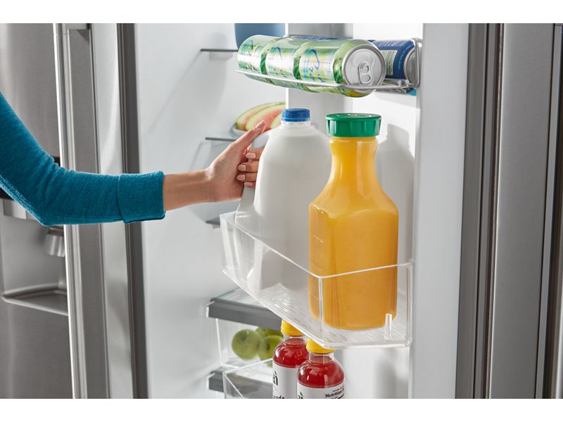 Free up shelf space with the in-door can caddy that keeps cans and bottles easy to grab and go.