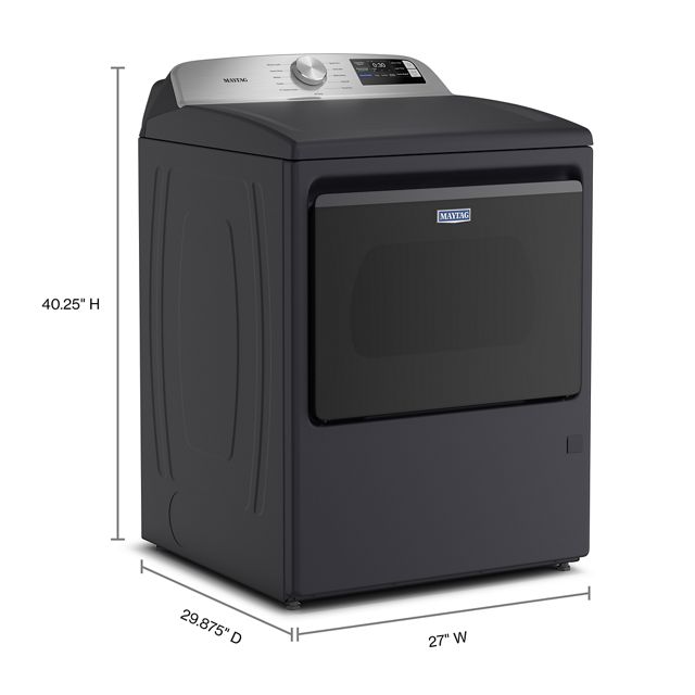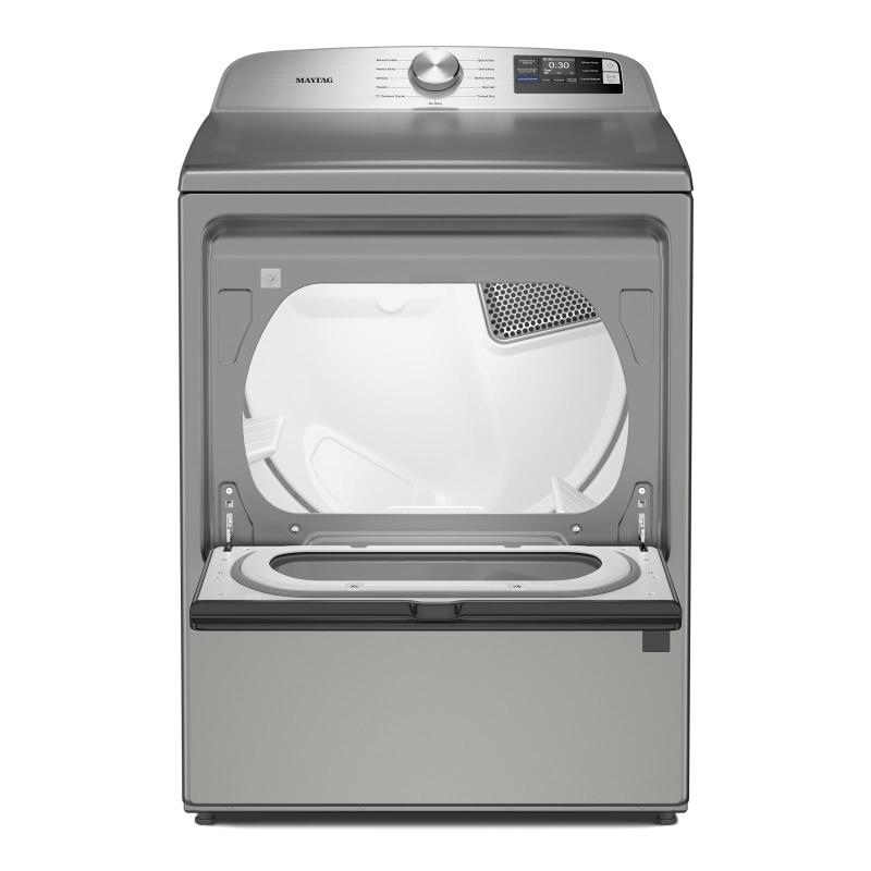 Extra Power boosts drying power to get thick fabrics drier the first time.* Advanced Moisture Sensing monitors inside moisture and air temperatures to help evenly dry loads. Dry a small load fast with the Quick Dry cycle, which pairs nicely with the Quick Wash cycle on select Maytag® washers to get clothes ready in no time. The Wrinkle Prevent option runs for up to 150 minutes after the cycle has ended to keep wrinkles from forming as the dryer continues to tumble. Smart features help you stay in control and efficiently manage laundry from anywhere.** Use the Maytag™ app to remotely start or stop your appliance and get end of cycle notifications so no load is left behind. Plus, troubleshoot select issues to avoid unnecessary service calls.*Results may vary based on load size and type.**WiFi & App Required. Features subject to change. Details & privacy info at maytag.com/connect. Appliance must be set to remote enable.