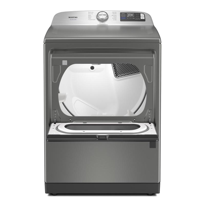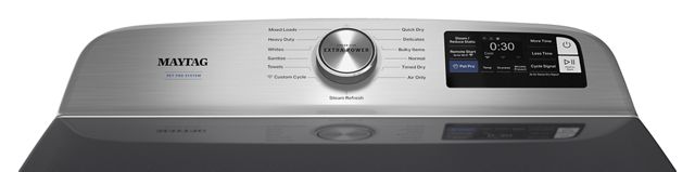 The Maytag® Pet Pro dryer traps and removes loads of pet hair from clothes. The Pet Pro option lifts and captures pet hair from clothes and traps it in the lint trap. Extra Power boosts drying power to get thick fabrics drier the first time,* while Advanced Moisture Sensing helps evenly dry loads.Harness the power of steam to help prevent wrinkles and refresh clothes with a steam-enhanced dryer. In the never-ending fight against pet hair, Maytag® dryer is ready to conquer pet hair like a pro.*Results may vary based on load size and type.