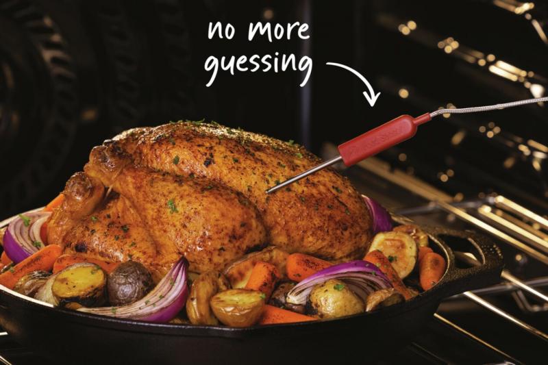 The Temperature Probe monitors and alerts when the desired finished cooking temperature has been reached.