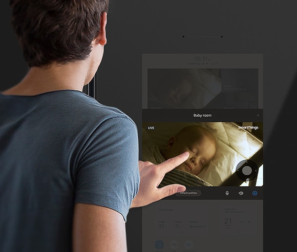 Turn your home into a smarter home. With the SmartThings App* you can control multiple smart devices with voice or touch controls. Google Nest** integration also lets you control Nest devices, like thermostats, cameras and door bells***. See who is at the front door from the Family Hub screen.