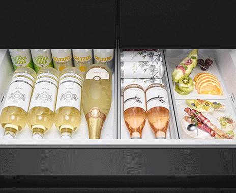 Enjoy easy access to refreshingly cold and flavored water. The Beverage Center inside the fridge is easily accessible, but stays more hygienic. It has a dishwasher safe* and BPA free** Autofill Pitcher for purified water, which can be infused with fruits or herbs, so it’s always ready to serve.