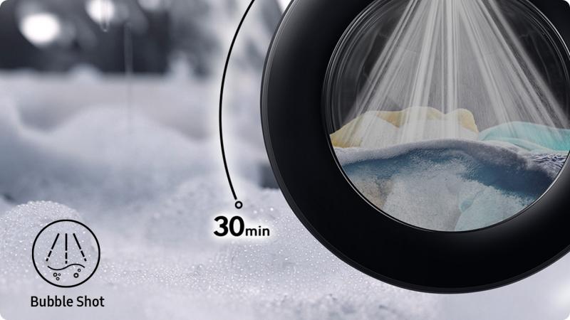 Cut laundry time while getting effortless cleaning. Super Speed cycle completes a full wash in only 30 minutes*. Powerful bubbles clean deep, while Bubble Shot uses strong water jets to rinse away detergent quickly. 1