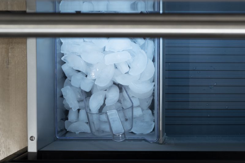 Filtered Automatic Ice Maker access ice quickly, made from filtered water. Produces 5.2 pounds of ice per day.