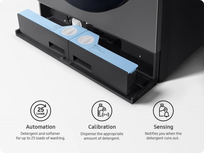 Get great washing results with less effort. A Flex Auto Dispense System dispenses the right amount of detergent and softener for each load. It gives you the flexibility to use various detergents and softeners and holds enough for up to 25 loads, or up to 47 loads if you only use detergent.