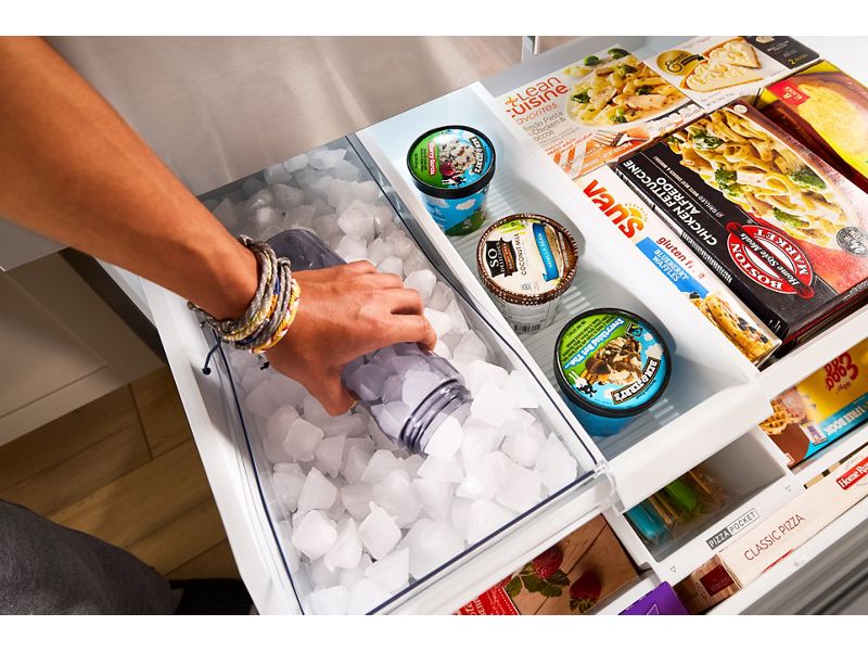 Large Capacity Ice Production makes over 3 lbs of filtered ice every day to keep up with life's everyday demands, from filling coolers for the family to water bottles on your way out the door.