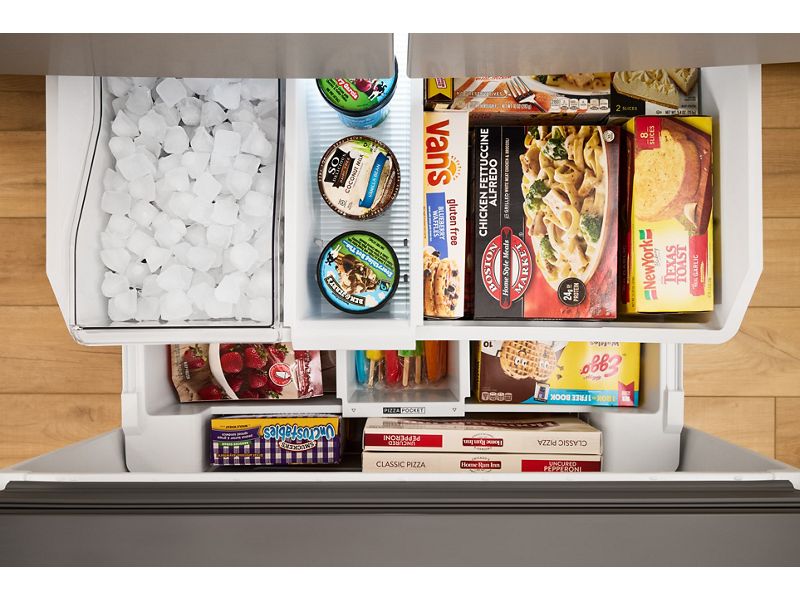 Get Family-Sized capacity with the Whirlpool® 30 Cu. Ft. French Door Refrigerator. Get filtered water at the push of a button with In-Door Filtered Water Dispenser & Ice Maker. Large Capacity Ice Production makes over 3 lbs of ice every day. And shift between 3 temperature settings and store leftovers, snacks, sodas and more with a Flexible Temperature Drawer.