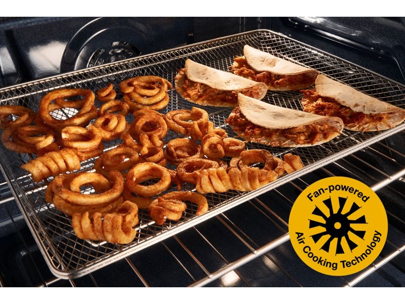 Melt, char and sear in a snap with Air Broil. Our high-speed fan drives air flow to drives intense heat directly to the top of the oven. Prepare juicy chops, crispy vegetables and gooey s'mores with the added power of intense air-driven heat.