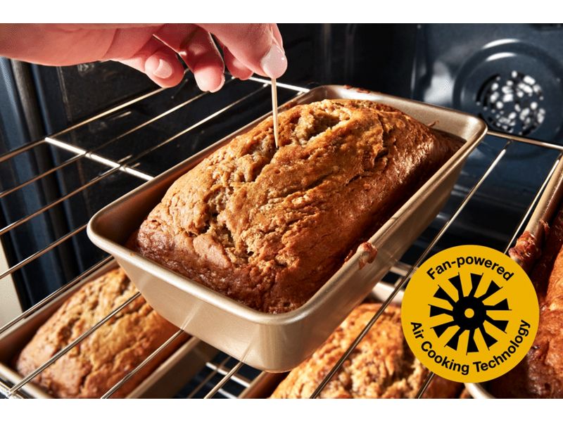 Go from gooey to golden and get even results when baking on multiple racks with Air Baking. Our high-speed fan optimizes air flow and drives consistent heat throughout the oven. Get golden results on breads, pastries and more.