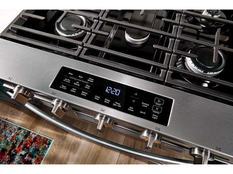 Experience the difference of Air Cooking Technology with this Whirlpool 30 inch gas range. Get crispy with our most advanced No Preheat Air Fry mode, and even results on every rack with Air Baking. Cook up all that delights, all at once with Griddle Zone, make feel good meals with a variety of Cooking Modes, and tackle your to-do list with smart features built for multitasking.