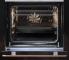 Contemporary aesthetics enhance the oven's interior, creating a bold cooking backdrop.