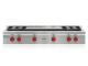 The professional-quality SRT484DG has several other features any cook might appreciate. The porcelain-coated, cast iron top grates are continuous, so you can move pans around without lifting them off the surface. Signature red control knobs allow infinite control of the burners. Heavy-duty stainless steel exterior cleans easily, and beautifully complements other Wolf and Sub-Zero appliances. It's precision gas cooking that fits easily into almost any kitchen design. less