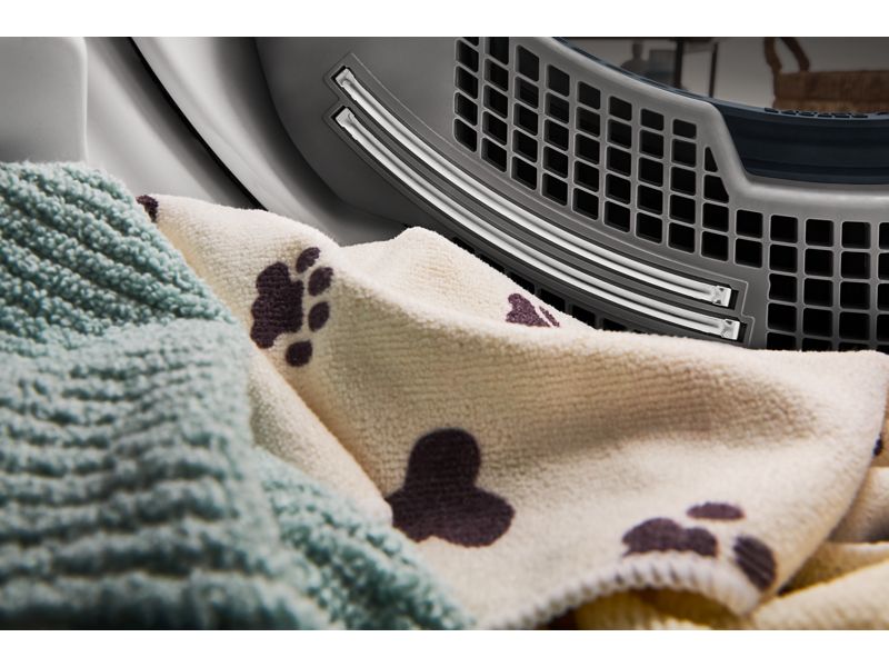 The Pet Pro Option lifts and captures pet hair in the lint trap from clothes by using the combined actions of reduced heat, extended cycle time, and moisture sensors that detect when a spray of water is needed.*