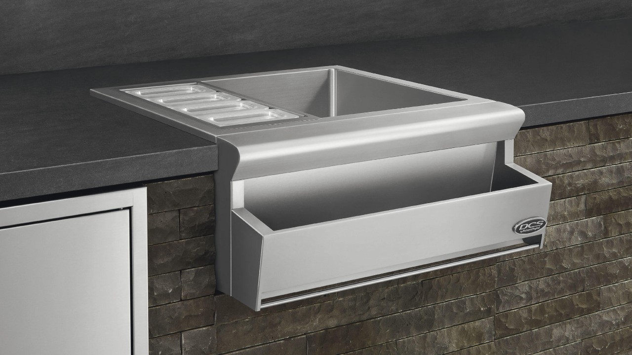 The DCS beverage chiller can be plumbed to convert to an outdoor 25" sink.
