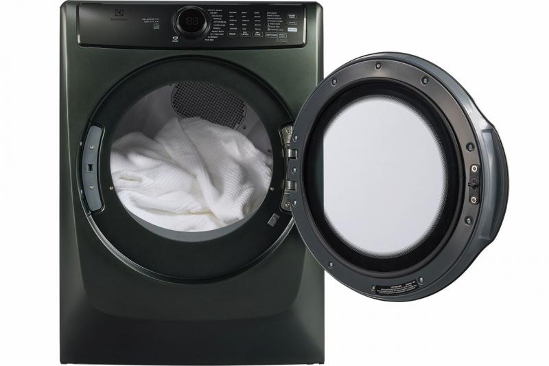 The Electrolux front load gas dryer in matte white finish with LuxCare Dry uses a moisture sensor to prevent over or under-drying. The Wear It Again cycle refreshes fabrics by using steam and tumble to remove pet hair, reduce odors, and reduce wrinkles in just 15 minutes. And the Luxury-Quiet Sound System is so quiet you can run it whenever you want without disrupting your household.