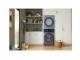 Fully integrated vertical layout takes up half the floor space of a traditional washer/dryer for greater laundry room flexibility. Features a full-sized washer on bottom, a full-sized dryer on the top, and a control panel in the middle for easy access.