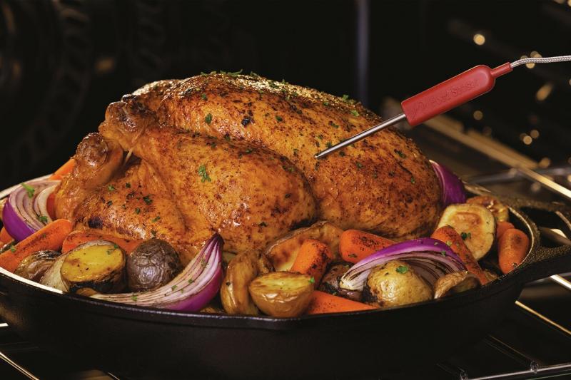 The Temperature Probe monitors and alerts when the desired finished cooking temperature has been reached.