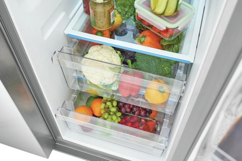 Enjoy the capacity to fit all of your family's favorites and keep everything tidy with our flexible organization system that includes adjustable gallon door bins, removable glass shelves and two produce drawers.
