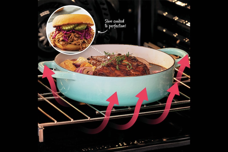 With Slow Cook, your food cooks slowly and at a lower temperature (as low as 100° F), allowing you to lock in moisture and flavor without over or undercooking your food.