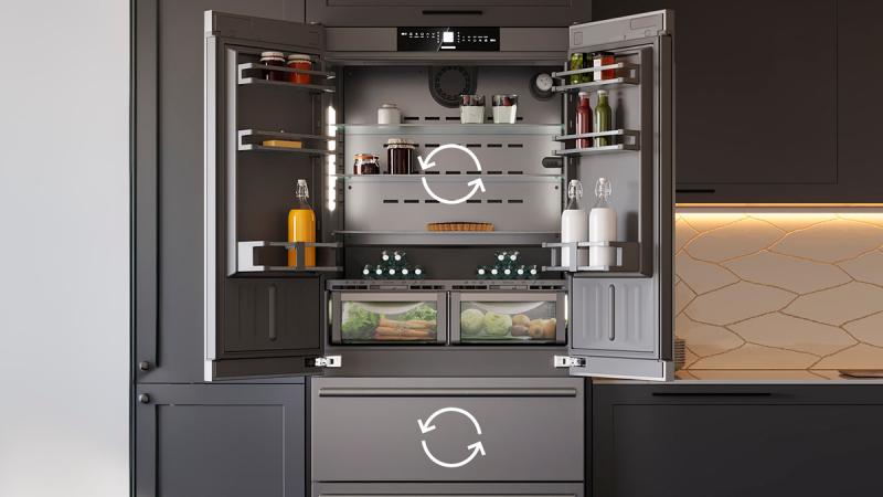DuoCooling uses two completely separate refrigeration circuits to ensure no air is exchanged between the refrigerator and freezer compartments. The food neither dries out nor is odor transferred. This means throwing less away, shopping less often, but saving more and greater enjoyment.