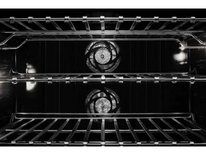 Dual rotating vertical fans work in tandem to circulate heated air from the two 3,400-watt elements around the top and bottom racks. The two fans drive the air throughout the cavity where you need it most for flaky bakery-style pastries, caramelized roasted vegetables and to transform marbled meats into succulent roasts. Advanced Temperature Precision on select JennAir Wall Ovens* consistently tune heating elements, offering our tightest temperature control.