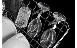 The largest third rack available has a deep, angled design that fits 6" glasses, mugs and bowls. It features rotating wash jets to clean items in the rack, a drying bar with tabs that help wick moisture off glasses and a removable utensil tray for cooking.