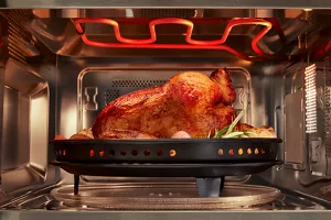 For Bake and Roast use dual heating elements to reach temperatures up to 425°F, turning this microwave into an oven for everything from small-batch bakes to a whole roast chicken.