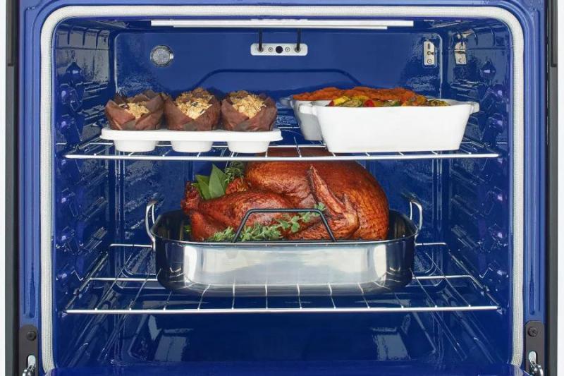An outstanding oven should meet your needs and look beautiful doing it. Our blue, porcelain-enamel interior provides a distinctive look while offering easy visibility inside the oven.