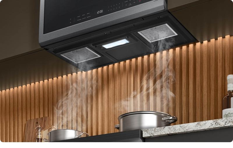 Save time and effort controlling the Over-the-range Microwave’s hood. SmartThings Auto Connectivity* lets you pair the hood with a compatible Samsung cooktop**, so you can control it with the one-touch controls of the cooktop***. You can instantly turn them both on or off for added convenience.