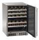 Experience the ultimate in wine preservation with tour Dual-Zone Wine Refrigerator, designed to cater to the needs of any wine enthusiast. Available in a sleek stainless steel model or a panel-ready model for custom cabinetry, with the capability to be used in indoor & outdoor settings. Includes 6-color multi-point LED lighting in adjustable white & cool tones. Electronic touch controls allow for precise temperature settings for each zone - 37°F to 50°F in the upper zone and 50°F to 61°F in the lower zone, ensuring each bottle is stored at its optimal temperature. Its 5.1 cu. ft. capacity accommodates up to 46 wine bottles, featuring additional lower storage and five full-extension wire racks for easy access.