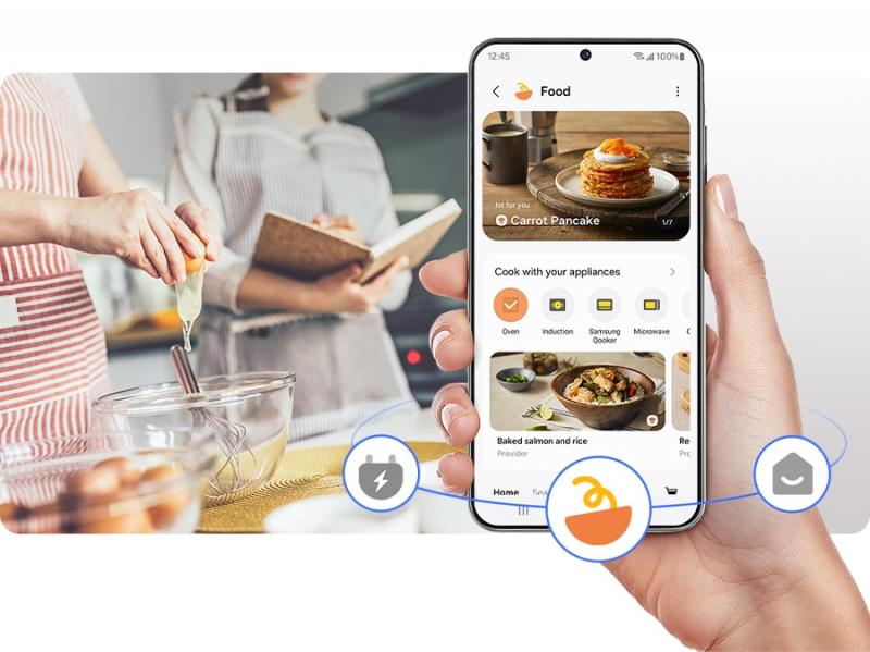 Smart cooking starts here. The SmartThings App* lets you monitor and control your oven remotely from your smartphone or with a voice assistant**, giving you flexibility to adjust settings and receive alerts anywhere. SmartThings Food recommends recipes for various contents.***, creates a daily meal plan, offers a guided cooking experience and enables effortless grocery shopping**** in one platform. 4