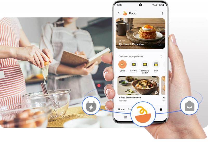 Make your kitchen experience more joyful with SmartThings Food's* one-stop kitchen experience. By understanding your needs, like dietary preferences, it recommends personalized recipes** and creates a weekly meal plan. A guided cooking experience also lets you control the oven settings with SmartThings Food.