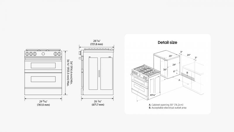| Net Size (W x H x D) (inch/mm) | (29 15/16) x (36 ~ 36 3/4) x (28 7/16) |