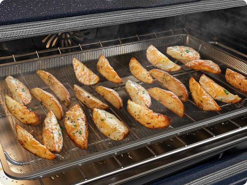 The Air Sous Vide* system continually senses the temperatures inside the oven and maintains an even temperature for a long period. Cook your food thoroughly, wherever it is in the oven, so it tastes deliciously tender and juicy.