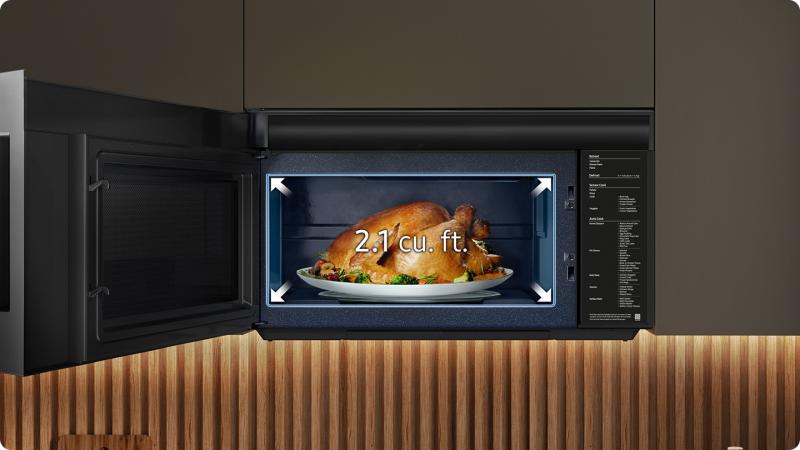 Enjoy the space you need to cook large dishes. Its large 2.1 cu. ft. capacity gives you the flexibility to accommodate meals and dishes of various sizes. Whatever your menu demands, you can cook the food you need quickly and efficiently. So it opens up a range of possibilities in home cooking.