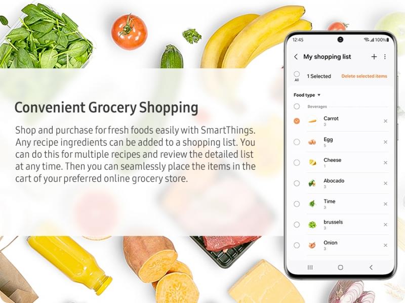 Enjoy a simple and fun way to cook and plan meals using SmartThings Cooking in the SmartThings App*. You can monitor and control the microwave oven's functions and settings. It recommends a cooking mode, suggests personalized recipes and meal plans, enables grocery shopping and offers an interactive experience.