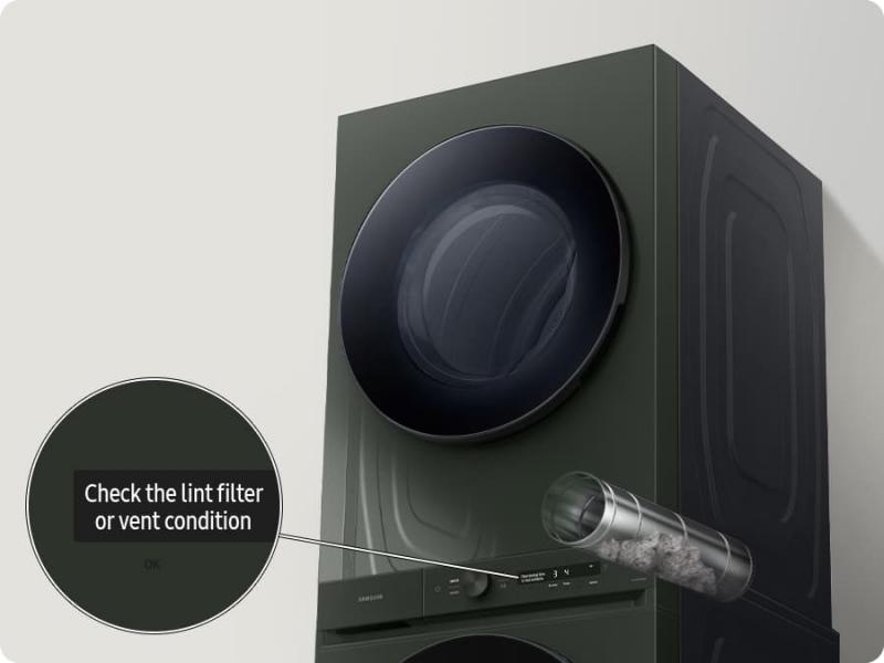 A sensor monitors the condition of your dryer's air duct to make sure it’s running well. Plus, automatic alerts let you know when it’s time to clean your air duct or check for obstructions.