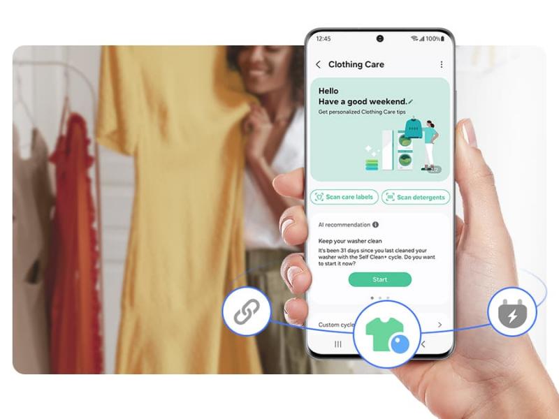 Enjoy a more personalized and efficient laundry experience. SmartThings Clothing Care* analyzes your usage patterns** and external factors to make recommendations. It also creates customized clothing care cycles to suit your lifestyle***. And you can buy laundry supplies using Alexa Smart Reorder****.