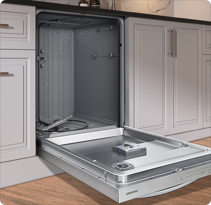 At end-of-cycle, the door automatically opens to circulate air and improve drying performance.
