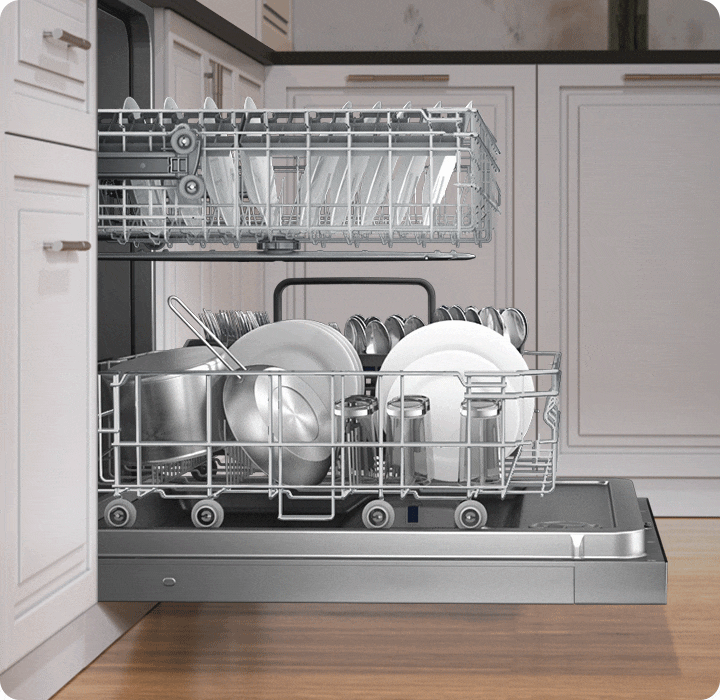 Height-adjustable upper rack makes it easy to accommodate various dishware shapes and sizes.