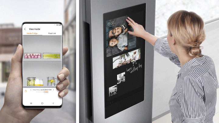 See whats in the fridge on your smartphone. The View Inside internal cameras show what food you have, so you can check when youre shopping. It also automatically tags food expiration dates and lets you create a shopping list, food memos or reminders.*