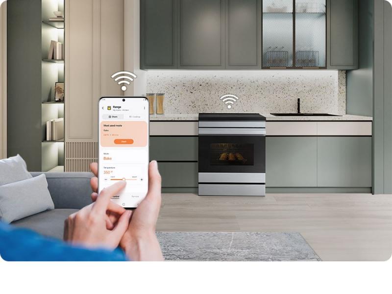 Enjoy added convenience and peace of mind with embedded Wi-Fi. The SmartThings App* lets you monitor and control the oven anywhere using a smartphone. You can check and adjust settings and receive alerts. You can also control it with your voice using a voice assistant**, like Samsung Bixby***.
