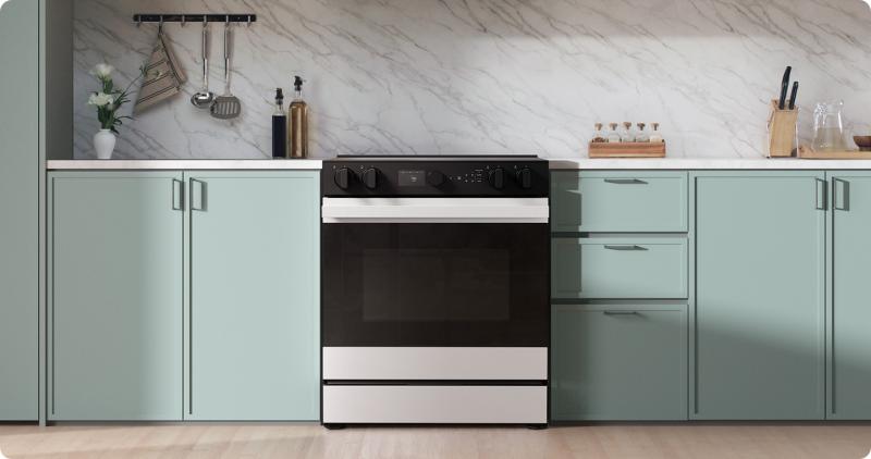 Give your kitchen a new look. This oven features a stylish and contemporary Bespoke design that will enhance the look of your kitchen or add an elegant colour accent. The range's recessed handle design seamlessly blends into your kitchen for a minimalist look.