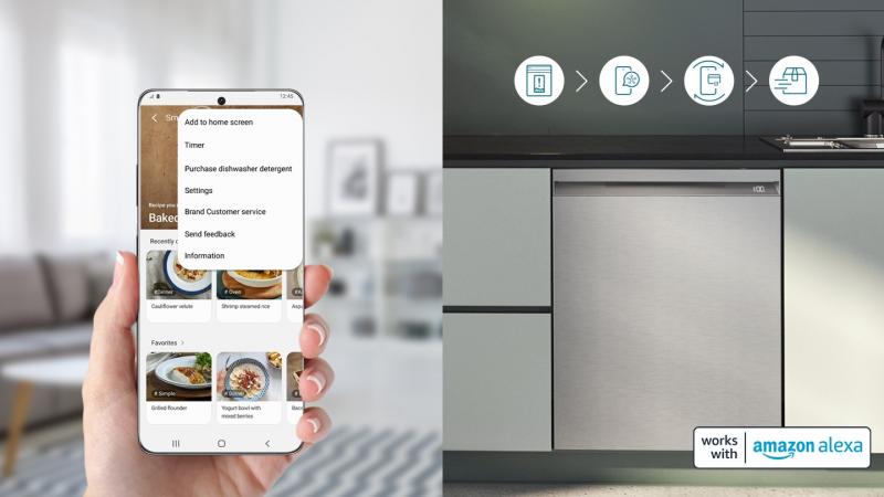 Enjoy a smarter way to control and customize your dishwasher and buy detergent anytime, anywhere. With the SmartThings App* you can remotely monitor and control the dishwasher. You can also download 5 specialist cleaning programs. And it even helps you buy more detergent pods online on Amazon.