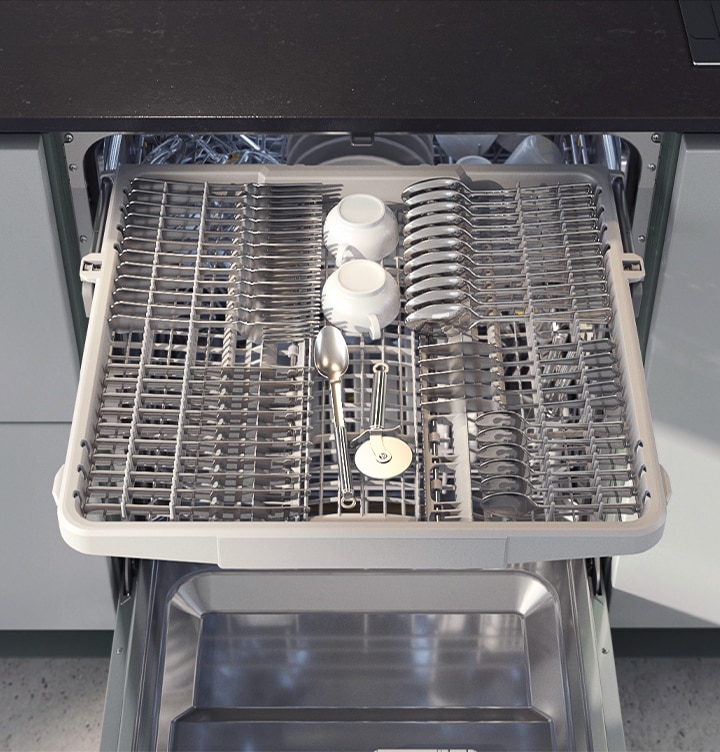 Make good use of the upper and middle racks of your dishwasher. A convenient 3rd Rack at the top provides a dedicated area to place your cutlery and utensils. It frees up to 30% more space for other items in the rest of the dishwasher*.