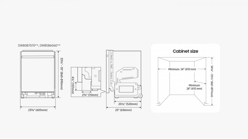 24" Samsung Bespoke 7 Series Smart 42 DBA Stormwash Plus Dishwasher with Smart Dry - DW80B7070AP/AC
